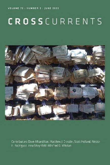 CrossCurrents connects the wisdom of the heart with the life of the mind and the experiences of the body. The journal is operated through its parent organization, the Association for Public Religion and Intellectual Life (APRIL), an interreligious network of academics, activists, artists, and community leaders seeking to engage the many ways religion meets the public. Contributions to the journal exist at the nexus of religion, education, the arts, and social justice. In the June 2022 issue of CrossCurrents: "Listening Contemplatively to Nature and Ourselves: Pedagogical and Personal Observations" by Dave Aftandilian "Daredevil: The Man Without Fear and White Catholic Masculinities" by Matthew J. Cressler "Political Theology, Public Theology, or a Theopoetic Anatheism for A Postecclesial, Post-secular Age?" by Scott Holland "Costa Brava" by Nestor E. Rodriguez "Guadalupe Maravilla: The Artist and The Sound Healer" reviewed by Irina Sheynfeld "Themes of death in Andy Warhol: Revelation at the Brooklyn Museum" reviewed by Irina Sheynfeld "Colleen D. Hartung, ed., Claiming Notability for Women Activists in Religion." reviewed by Winifred O. Whelan