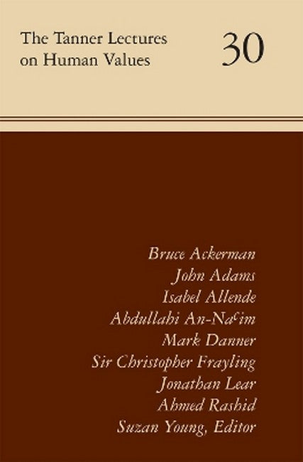 The Tanner Lectures on Human Values, founded July 1, 1978, at Clare Hall, Cambridge University, was established by the American scholar, industrialist, and philanthropist Obert Clark Tanner. Lectureships are awarded to outstanding scholars or leaders in broadly defined fields of human values and transcend ethnic, national, religious, or ideological distinctions. Volume 30 features lectures given in 2010 at Princeton University; Yale University; the University of California, Berkeley; the University of Utah; Stanford University; Clare Hall, Cambridge University; Harvard University; and Brasenose College, Oxford University. CONTRIBUTORS: Bruce Ackerman, ""The Decline and Fall of the American Republic"" Bruce Ackerman is Sterling Professor of Law and Political Science at Yale and the author of fifteen books that have had a broad influence in political philosophy, constitutional law, and public policy. John Adams, ""Doctor Atomic and His Gadgets"" John Adams is a musician, composer, writer, and conductor whose work stands out for its depth of expression, its sonic brilliance, and the profoundly humanist nature of its themes. Isabel Allende, ""In the Hearts of Women"" Isabel Allende is a social activist and feminist whose novels and memoirs have established her as one of the most respected writers of our time. Abdullahi An-Nacim, ""Transcending Imperialism: Human Values and Global Citizenship"" Abdullahi Ahmed An-Nacim is the Charles Howard Candler Professor of Law at Emory Law School and an internationally recognised scholar of Islam and human rights in cross-cultural perspectives. Mark Danner, ""Torture and the Forever War"" Mark Danner is a writer, journalist, and professor who has written for more than two decades on foreign affairs and international conflict. Sir Christopher Frayling, ""Art and Religion in the Modern West: Some Perspectives"" Sir Christopher Frayling is a historian, critic, and an award-winning broadcaster on British network radio and television. He has written seventeen books on the arts and popular culture. Jonathan Lear, ""Becoming Human Does Not Come That Easily"" Jonathan Lear is the John U. Nef Distinguished Service Professor at the Committee on Social Thought and the Department of Philosophy at the University of Chicago. His research and writings focus on philosophical conceptions of the human psyche. Ahmed Rashid, ""Afghanistan"" and ""Pakistan"" Ahmed Rashid is a reporter from Pakistan whose unique knowledge of this complex region allows him a panoramic vision and nuanced perspective that no Western writer can emulate.