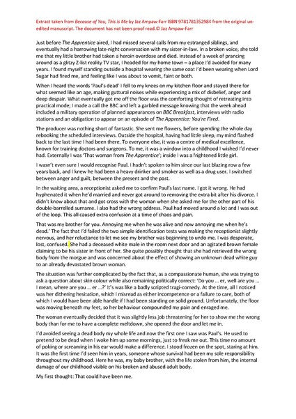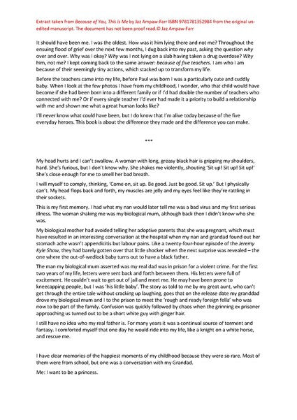Growing up in poverty, and neglected and abused by her own parents, Jaz Ampaw-Farr was destined to become a statistic. Her story was changed, however, by a handful of teachers who made the point of putting human connection first despite the challenges of the education system. Because of these people, Jaz went on to become a teacher, writer and international speaker who, through celebration and provocation, engages and galvanises educators into embracing the difference that they can make when they put being a human first too. In Because Of You, This is Me Jaz shares her story - often harrowing but always uplifting to show the ways in which the everyday heroes in our schools can empower those children who need their help the most.