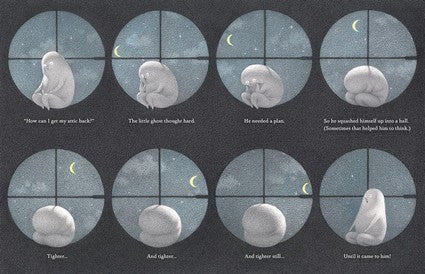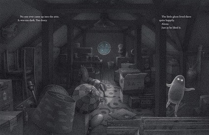 "In the quiet attic of a large house lives a little ghost. Alone. Just as he likes it." The little ghost spends long nights swooping up and down, and round and round -- having fun, all by himself. He has no need to leave his dark and dusty attic; in fact he's actually rather worried about leaving. Until one day his peace is disturbed by a curious girl. The little ghost sulks: why won't the annoying and slightly scary child leave him alone? So, the grumpy ghoul decides to do what ghosts do best... But this little girl isn't easily frightened. This wryly funny story about adapting to change, facing your fears and having the courage to open yourself up to others is brought to life by Japanese author-illustrator Mamiko Shiotani's beautifully soft and textured artwork.