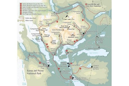 The centrepiece of this dramatic area is the 10-11 day Torres del Paine Circuit (also known as the O Circuit), while the shorter Half Circuit (the W) visits much of the same sights in 4-5 days. The guidebook also includes four shorter day walks, a multi-day trek in Argentinas Los Glaciares national park, and several excursions from Puerto Natales and El Calafate.