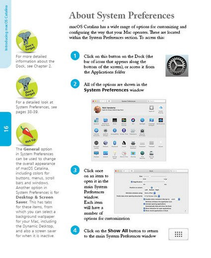 macOS in easy steps opens up by explaining the foundations of macOS: the Dock and the Finder. Then, it reveals a raft of ways in which you can make the most of the latest version of macOS: Multi-Touch navigation options for getting around in macOS. Working with and managing your apps. Productivity options on your Mac. Getting online with Safari, Mail, Messages and FaceTime. Managing your digital lifestyle for photos, music, video, books and games. The invaluable iCloud online function for backing up, sharing and continuing from different devices. Using Siri, Dynamic Desktop and Dark Mode to make things even easier. Keeping your Mac working smoothly. There is also a chapter on troubleshooting and keeping macOS in tiptop shape. Get more out of your Mac, Mac mini, Mac Pro or MacBook with minimum time and effort! Covers macOS version 10.15.