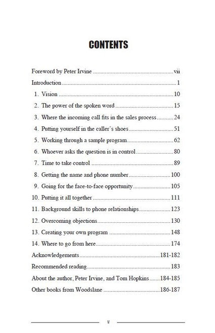 Every time someone calls a business they have chosen that organisation as a possible supplier of something they want. Each incoming call is not just a possible customer, but a probable customer. They are a hot opportunity that has come knocking at the door, and are the most likely buyers any business will encounter. Converting them into sales can be easy, but only if you manage the calls properly! There are many books on outgoing telephone sales calls, but ones specifically with incoming calls are few and far between. There are books on customer service, on phone etiquette, on using the phone as a work tool, but writers haven't hitherto treated incoming sales calls with the respect they deserve. This book focuses on dealing with incoming calls, and dealing with them in a way that will allow business owners, managers and sales staff to get face-to-face opportunities to sell their products. It shows why you need to get face-to-face to sell, and how to get face-to-face from an incoming telephone sales enquiry. It's a practical book, including step-by-step examples and case studies to show exactly how to become a `Phone Master'. The reader will be able to create and follow presentations, and see why up to 96% of the top salespeople in the world use a planned presentation when using the telephone. The book shows why and how to develop a custom-made program, how to use words to build trust, how to lead the caller to a face-to- face opportunity, and how to overcome objections.