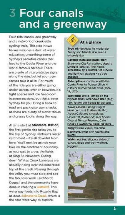 - Cycling around Sydney: Feel the city; Time and tide; Just coasting; Lakes and parks; Smell the bush