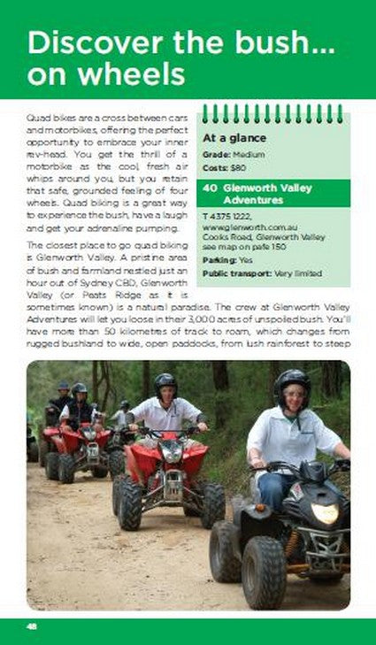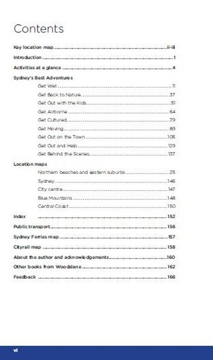 - Sydneys Best Adventures: Get Wet; Get Back to Nature; Get Out with the Kids; Get Airborne; Get Cultured; Get Moving; Get Out on the Town; Get Out and Help; Get Behind the Scenes