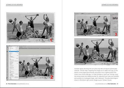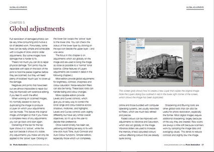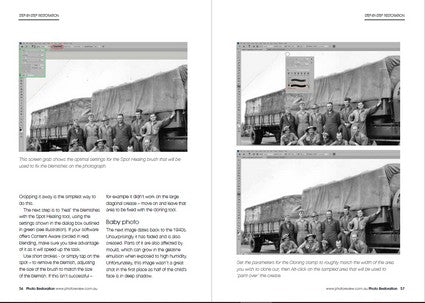 Restoration of some damaged photos can be quite simple and achievable with a couple of clicks and slider adjustments, while other images can be much harder to fix and involve a lot of detailed work. Photo Restoration starts by showing you the best ways to digitise your old prints - scanning options, advice on settings, image resolution, re-sizing and cropping in preparation for retouching. We advise what to look for in editing software and how to use restoration tools including Colour correction, Contrast adjustment, Sharpening, Dodging and burning, Dust and scratch removal, Clone stamp, Healing brush, and some of the more advanced solutions like Content aware corrections and Content filling algorithms that can help recreate missing parts of a photo. We look at several case studies and provide step by step fixes for some of the most common blemishes in old photographs. Today’s editing/retouching tools are powerful, but repair of some damaged images is beyond the skill of most amateur photographers. We help you identify when it might be better to rely on the expertise of professional photo restoration services. And we show you the best ways to store, organise, share and display your restored images.