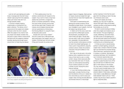 Good portraits reveal aspects of a persons identity, attitude, and personality. Great portraits can reveal the "essence" of a persons character. This easy-to-follow pocket guide provides expert advice on the best cameras, lenses, lighting, focus and exposure settings for different types of portraiture. We cover candid, formal, single and group portraits, natural versus artificial lighting, how to set up a basic photo studio and how to create an ‘atmosphere’ where you can build a genuine rapport with the subject. We look at the role of clothing, positioning, posture, light angles, background, props, and how to be ready to capture spontaneous moments. There are tips on how to deal with bad behaviour, short attention spans, and varying weather conditions, and advice on photographing children, families, special occasions, and community events. Portraiture is filled with practical and creative ways to ensure your portrait photography is enjoyable and rewarding.