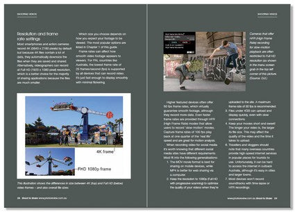 - Framing shots, stabilisation, special modes, resolution, frame rates and recording soundtracks.