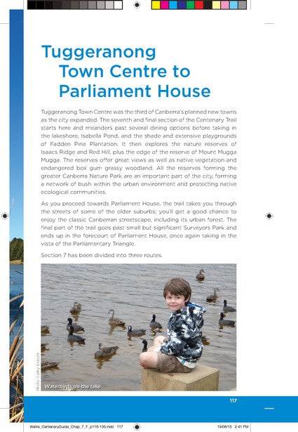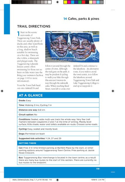 Regional mapsIntroductionSuggested itinerariesThe Centenary Trail at a glanceWalking and Cycling Canberra’s Centenary TrailAcknowledgements to the traditional custodiansAustralian Birds along the Centenary TrailAustralian Wildlife along the Centenary TrailAustralian Flora along the Centenary TrailExploring the Centenary Trail with childrenUseful contacts and further readingSafety on the trailOff-road mountain bikingMap symbolsIndexAbout the authors