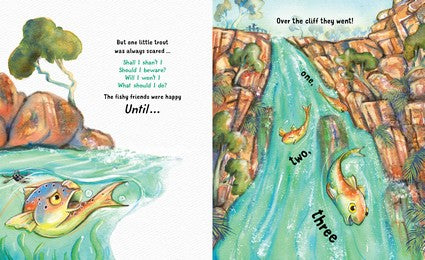 Author:Araman Cam is the pen name for Bafta Award winning video game writer and director Brendan McNamara. Brendan writes video games for a living and also songs for the music collective Extra Time. This is his first attempt at writing a children’s story but as a father of four he has certainly read a vast number of children’s books. The Lonely Brown Trout came about during a bushwalk in the Blue Mountains, near Sydney. At the top of Wentworth Falls there is a pool on the edge of a huge precipice. That pool contained one little brown trout swimming round and around all by itself.Illustrator:Emma Stuart has been illustrating children’s books for the past 11 years. In this time, she has illustrated over 30 books. Emma works primarily with watercolours but also works with acrylics, oils, pen and ink and pencil. Her characters are full of life and bring a real sense of light heartedness to the reader. Emma can work in a large range of genres and styles, from highly detailed realism to simple character-based illustration. Recently nominated by Luerzer’s Archive Magazine to appear in “Best 200 illustrators worldwide” 11/12 issue. As well as illustration, Emma exhibits